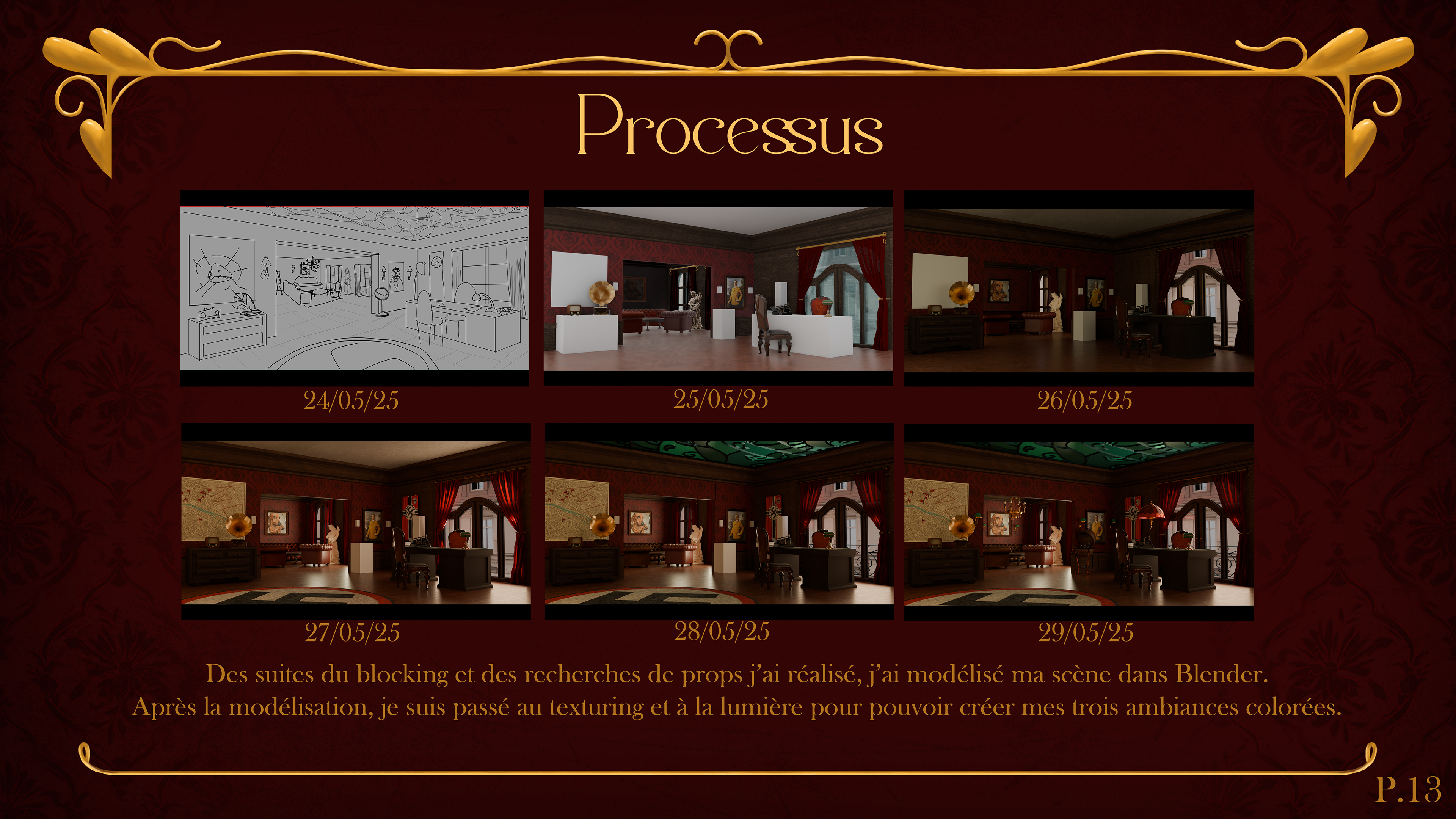 I also designed several color-coded props to reinforce these moods.