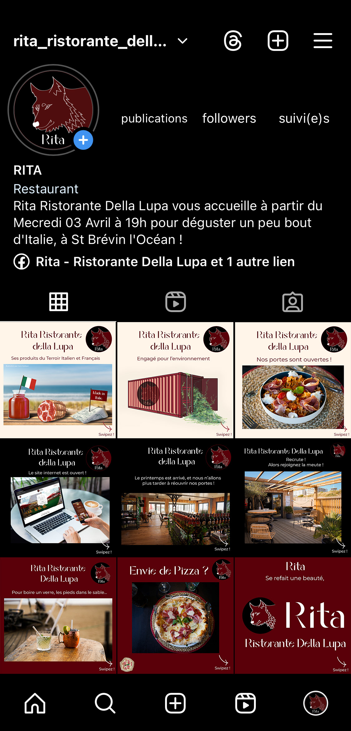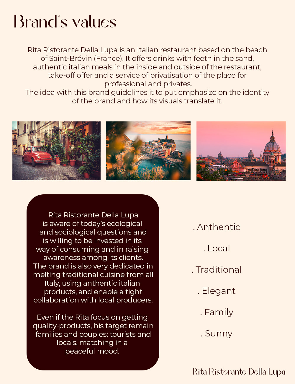 Creation of brand guideline for a french-italien restaurant. Design of prints such as flyers and menus. Social Media managment.